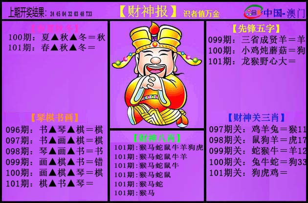 101期: 澳门六合彩红姐彩圖信封【黄财神报】每期自动更新
